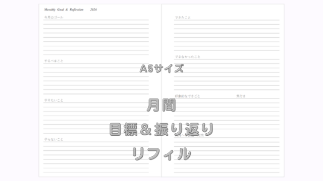 【無料DL】A5サイズ『月間目標&振り返りリフィル』